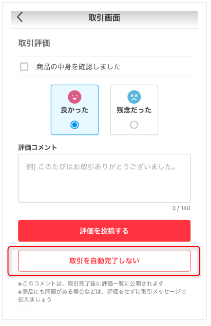 先述のとおり、「取引を自動完了しない」ボタンを押せば、自動取引完了を停止できます。