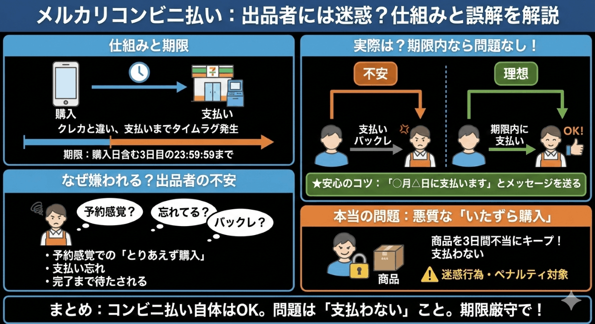 メルカリコンビニ払いは出品者に迷惑?仕組みと誤解を解説