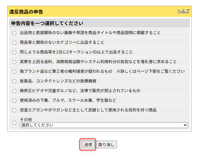 ヤフオク運営に違反申告を通報するやり方