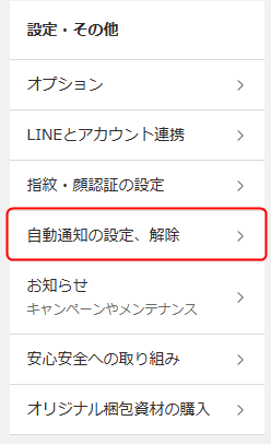 通知の設定は「マイオク」→「自動通知の設定、解除」で確認できます。