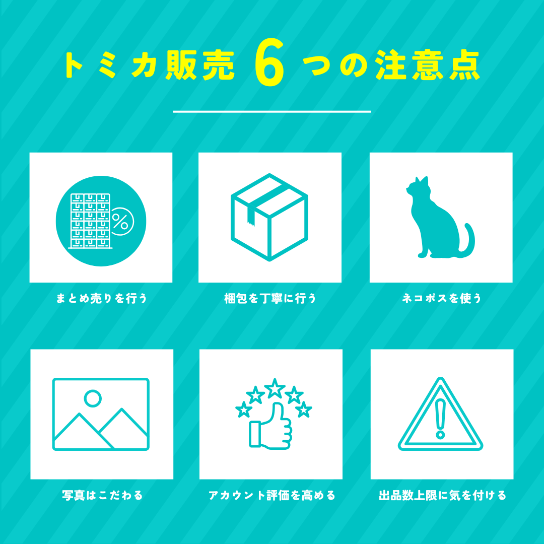 - メルカリでトミカを売る場合は、梱包・発送方法・写真・アカウント評価が重要になる